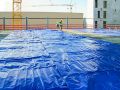 Unsere Mietplanen sind aus starkem, beidseitig PVC-beschichtetem Polyestergewebe mit einem Gewicht von 680 g/qm und einer Reißkraft von 3000 N/5 cm. Sie sind beidseitig lackiert und können auf Wunsch ebenfalls schwer entflammbar gem. DIN 4102 B1 ausgerüstet werden. Die PVC-Planen sind randverstärkt und haben ringsum Ösen im Abstand von 1 m. Die Standardgröße ist 10 x 6 m – weitere Größen (5 x 6 m, 6 x 12 m, 8 x 10 m) erhalten Sie auf Anfrage. Bei Langzeitmieten fertigen wir Ihnen gerne Ihre individuellen Mietplanen in jeder gewünschten Größe an.